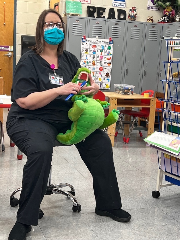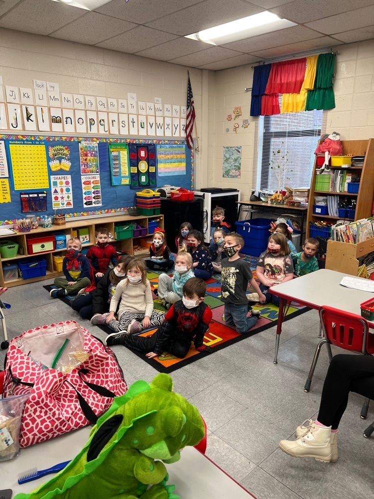 Kindergarten learns about dental health. Thank you Tara Wagner!